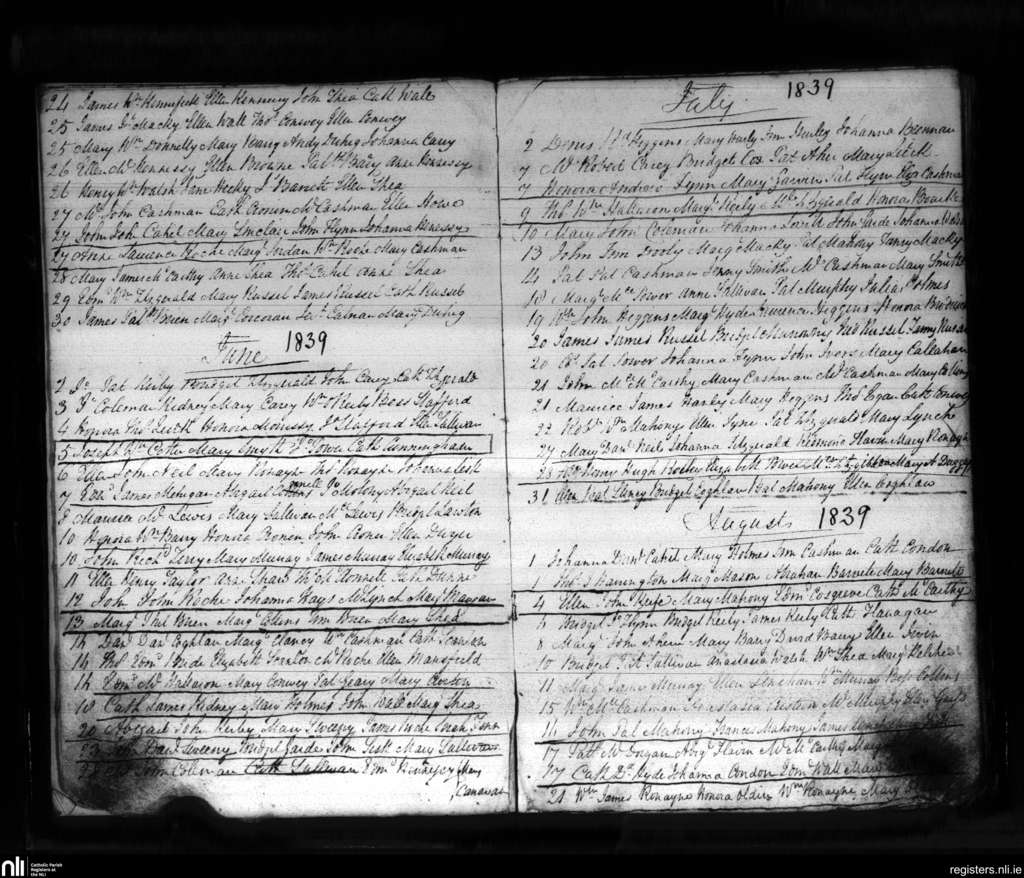 Aghada; County of Cork; Diocese of Cloyne. Baptisms, May 1839 to Aug. 1839