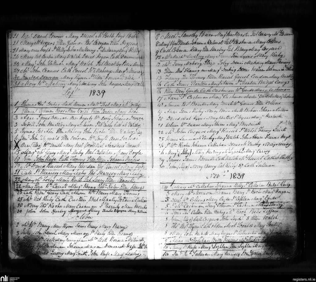 Aghada; County of Cork; Diocese of Cloyne. Baptisms, Aug. 1839 to Nov. 1839