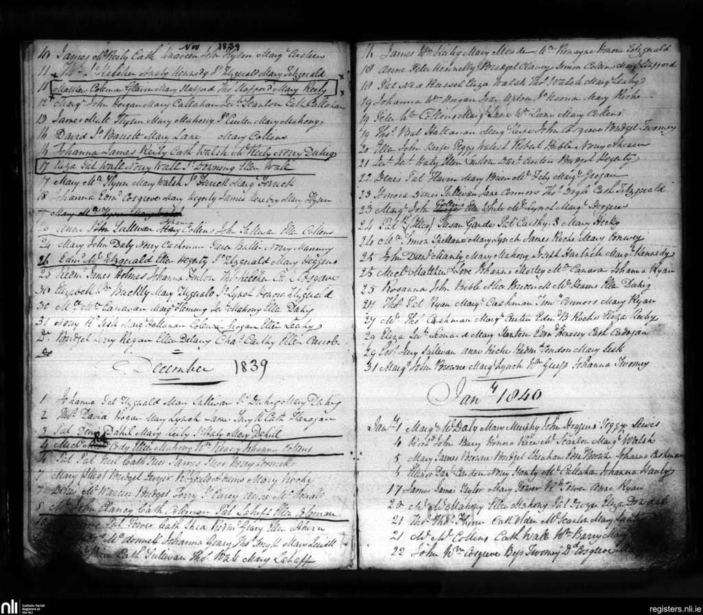 Aghada; County of Cork; Diocese of Cloyne. Baptisms, Nov. 1839 to Jan. 1840