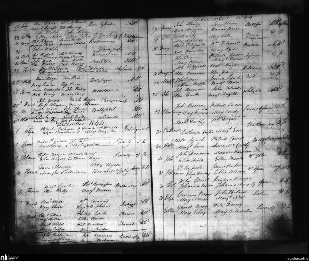 Aghada; County of Cork; Diocese of Cloyne. Baptisms, Nov. 1844 to Dec. 1844