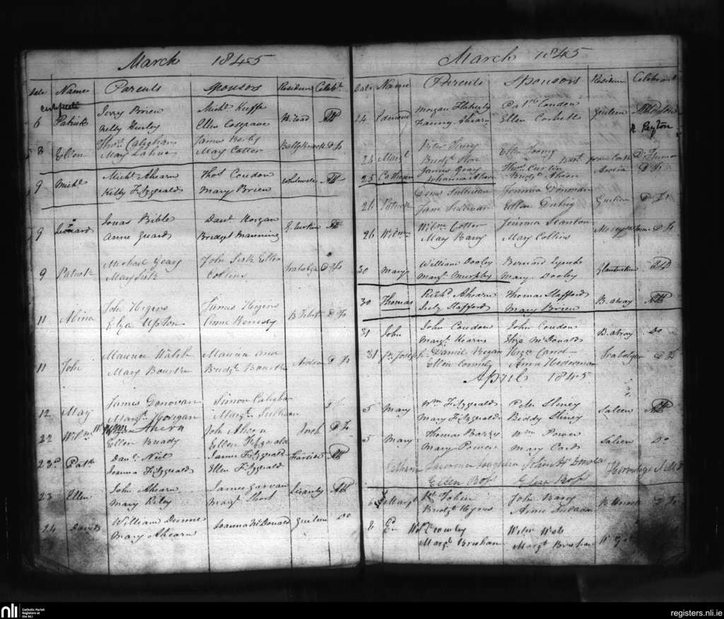 Aghada; County of Cork; Diocese of Cloyne. Baptisms, Mar. 1845 to Apr. 1845