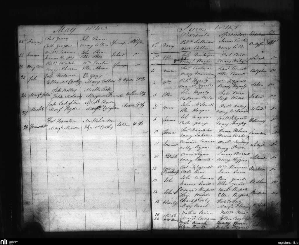 Aghada; County of Cork; Diocese of Cloyne. Baptisms, May 1845 to June 1845
