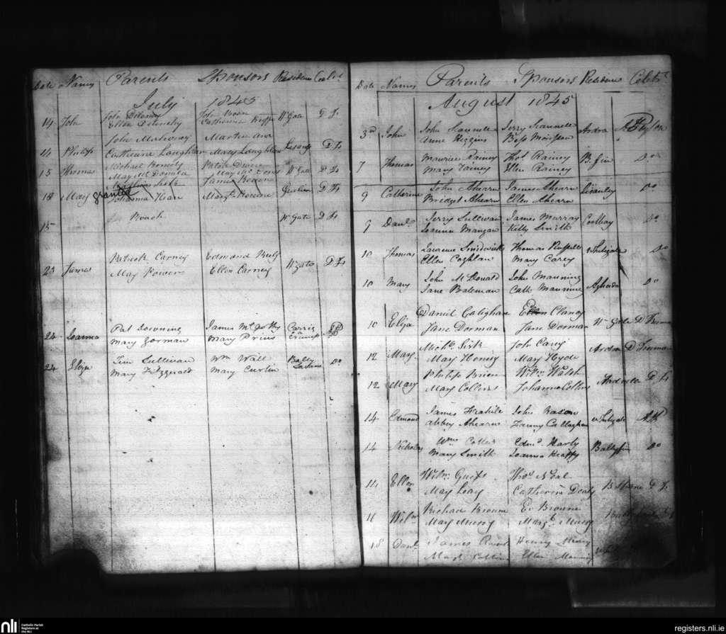 Aghada; County of Cork; Diocese of Cloyne. Baptisms, July 1845 to Aug. 1845