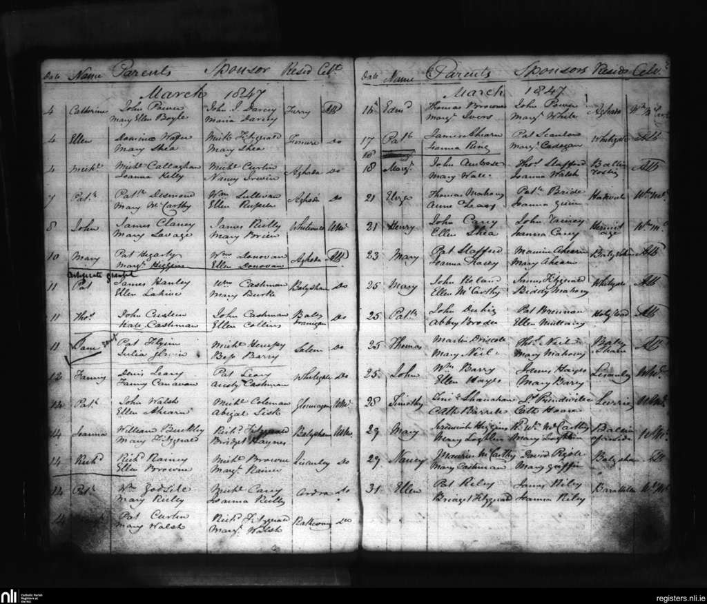 Aghada; County of Cork; Diocese of Cloyne. Baptisms, Mar. 1847