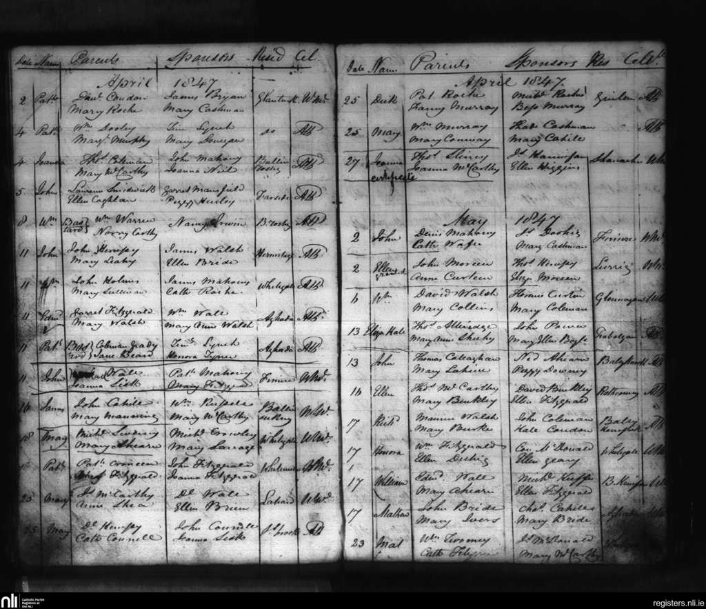 Aghada; County of Cork; Diocese of Cloyne. Baptisms, Apr. 1847 to May 1847