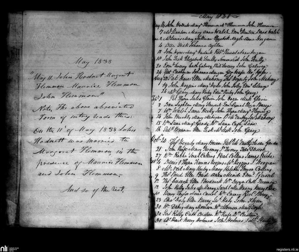 Aghada; County of Cork; Diocese of Cloyne. Marriages, May 1838 to Nov. 1838