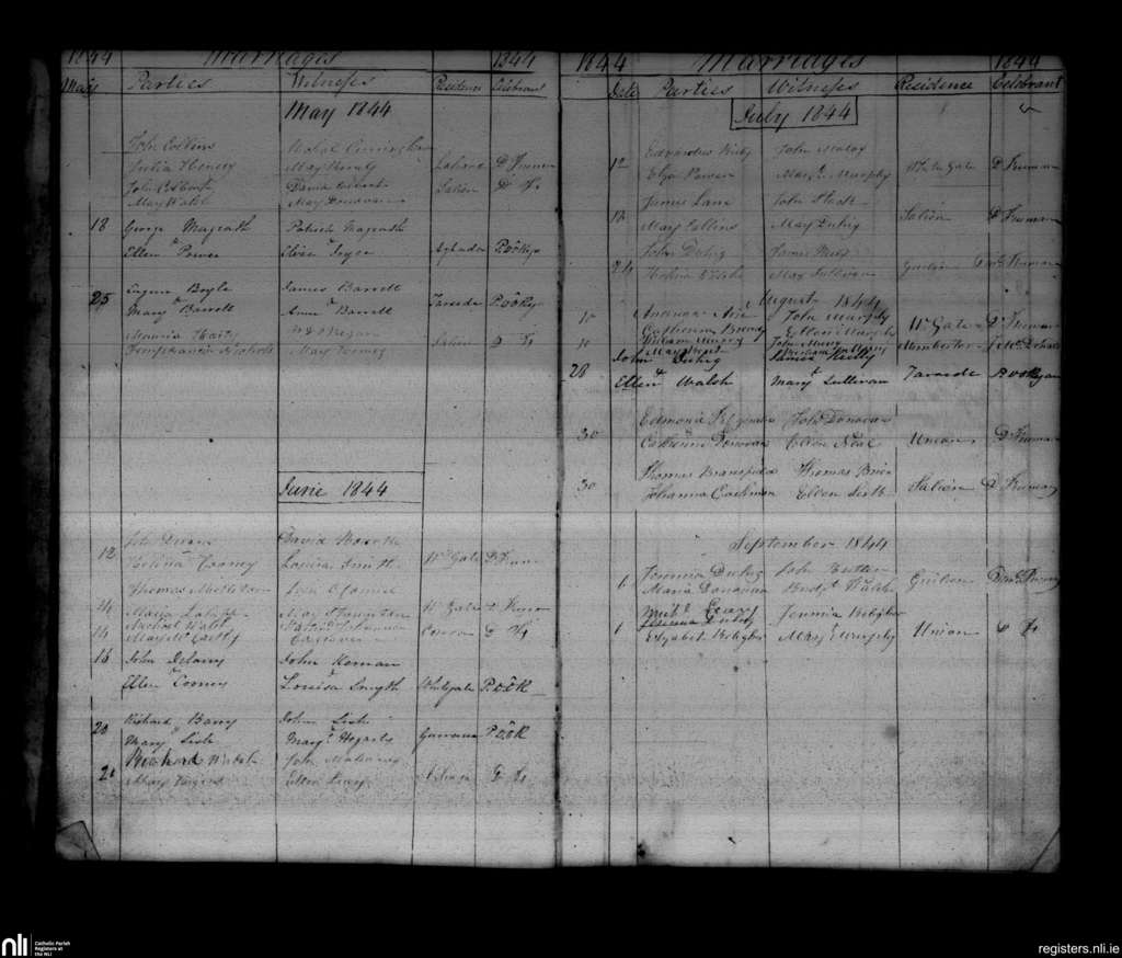 Aghada; County of Cork; Diocese of Cloyne. Marriages, May 1844 to Sep. 1844