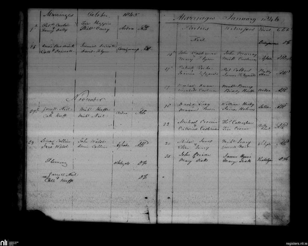 Aghada; County of Cork; Diocese of Cloyne. Marriages, Oct. 1845 to Jan. 1846