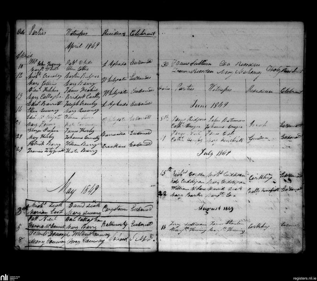 Aghada; County of Cork; Diocese of Cloyne. Marriages, Apr. 1849 to Aug. 1849