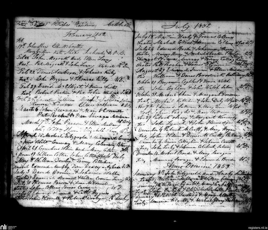 Aghada; County of Cork; Diocese of Cloyne. Marriages, Feb. 1852 to Jan. 1853