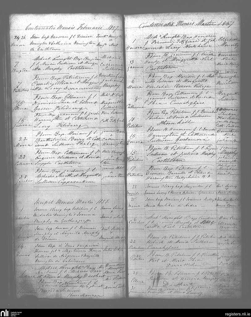 Castletownbere; County of Cork; Diocese of Kerry. Baptisms, Feb. 1856 to Apr. 1856