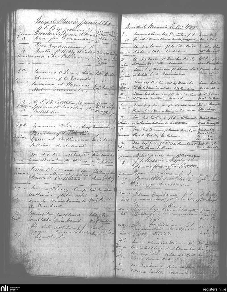 Castletownbere; County of Cork; Diocese of Kerry. Baptisms, July 1854 to Dec. 1854