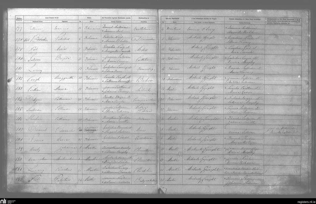 Castletownbere; County of Cork; Diocese of Kerry. Baptisms, Feb. 1877 to Apr. 1877