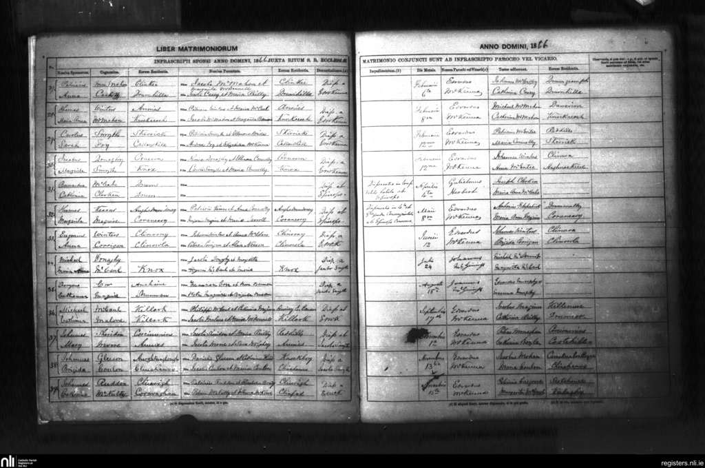 Drumully; County of Fermanagh, Monaghan; Diocese of Clogher. Marriages, Feb. 1866 to Nov. 1866