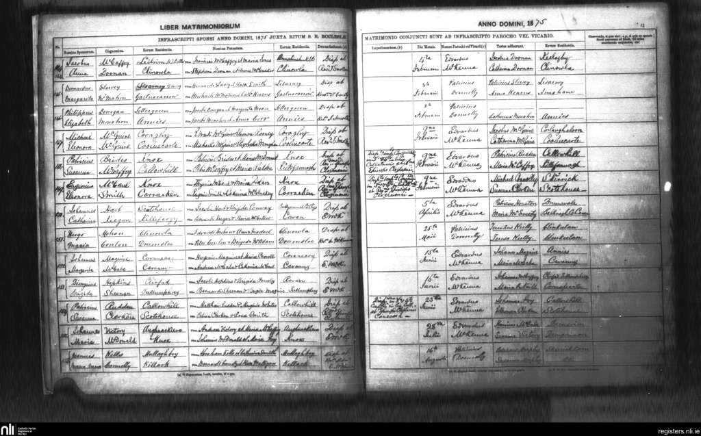 Drumully; County of Fermanagh, Monaghan; Diocese of Clogher. Marriages, Feb. 1875 to Aug. 1875