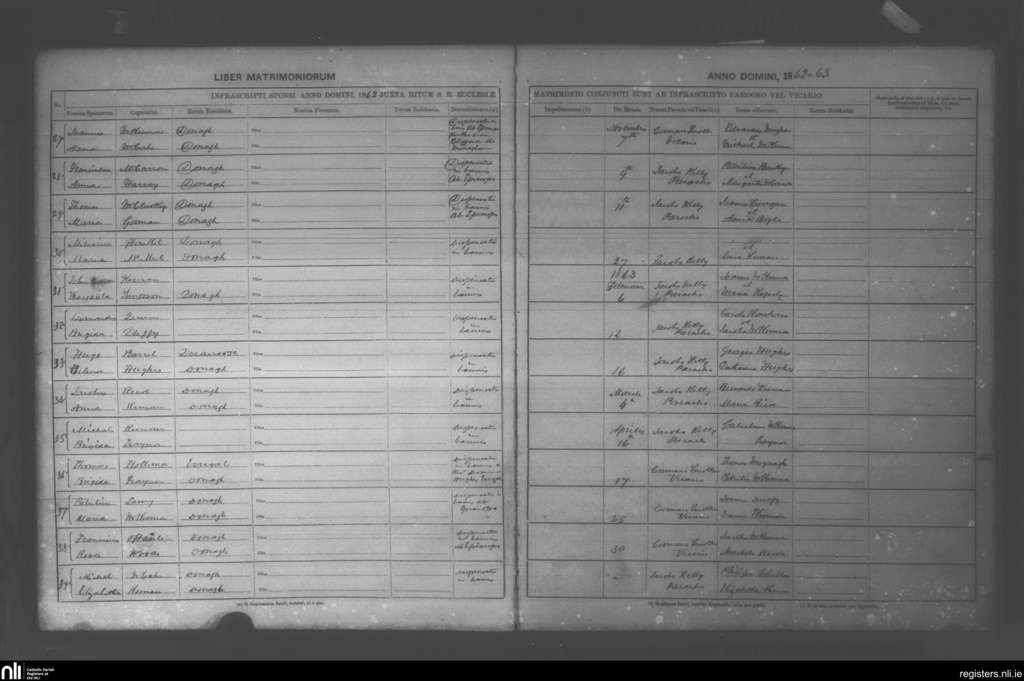 Donagh; County of Monaghan; Diocese of Clogher. Marriages, Nov. 1862 to Apr. 1863
