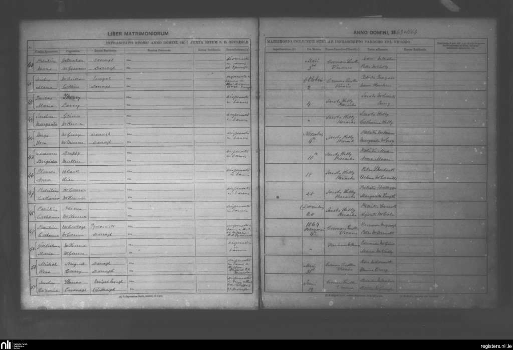 Donagh; County of Monaghan; Diocese of Clogher. Marriages, May 1863 to June 1864