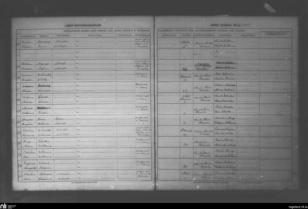Donagh; County of Monaghan; Diocese of Clogher. Marriages, July 1864 to May 1865