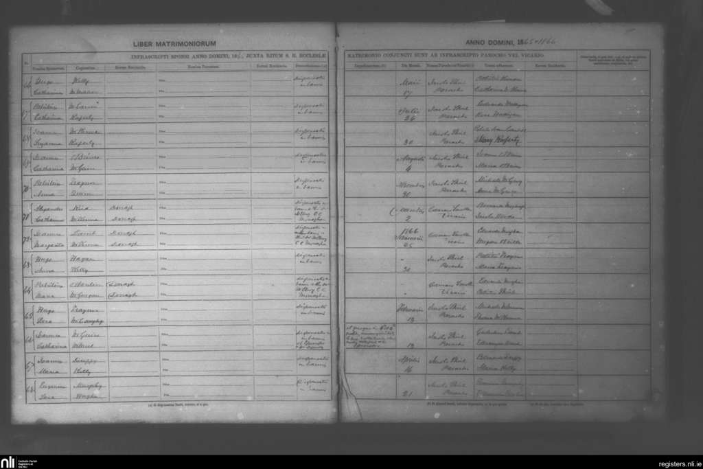 Donagh; County of Monaghan; Diocese of Clogher. Marriages, May 1865 to Apr. 1866