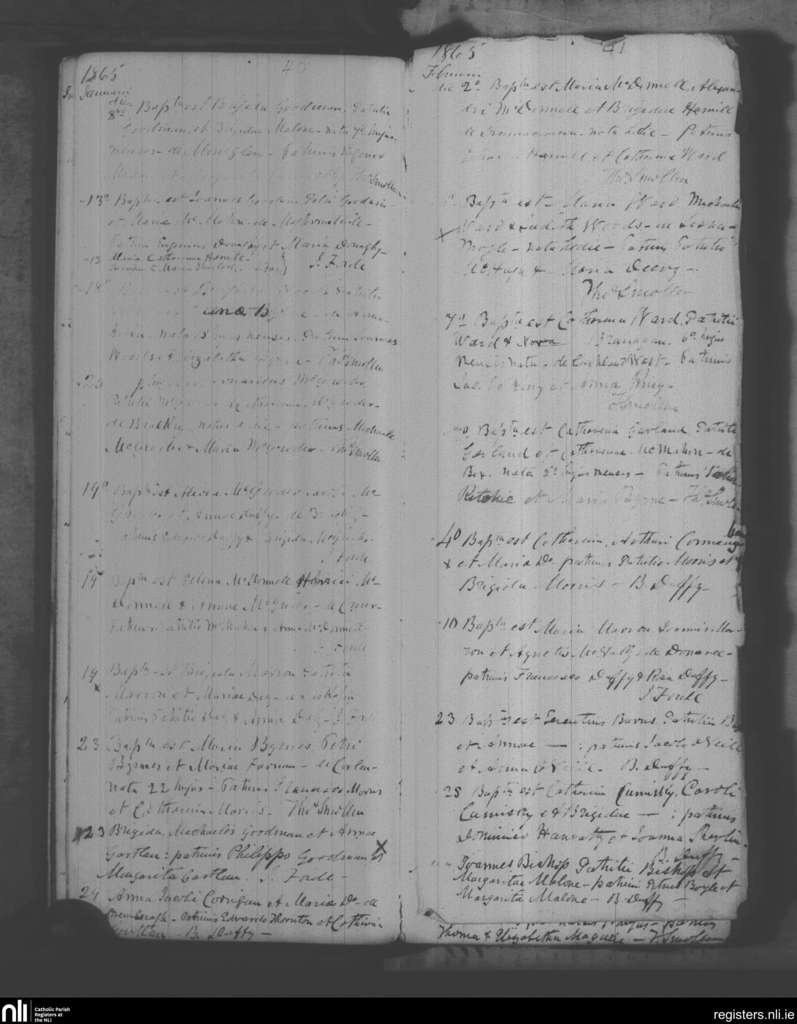 Donaghmoyne; County of Monaghan; Diocese of Clogher. Baptisms, Jan. 1865 to Feb. 1865
