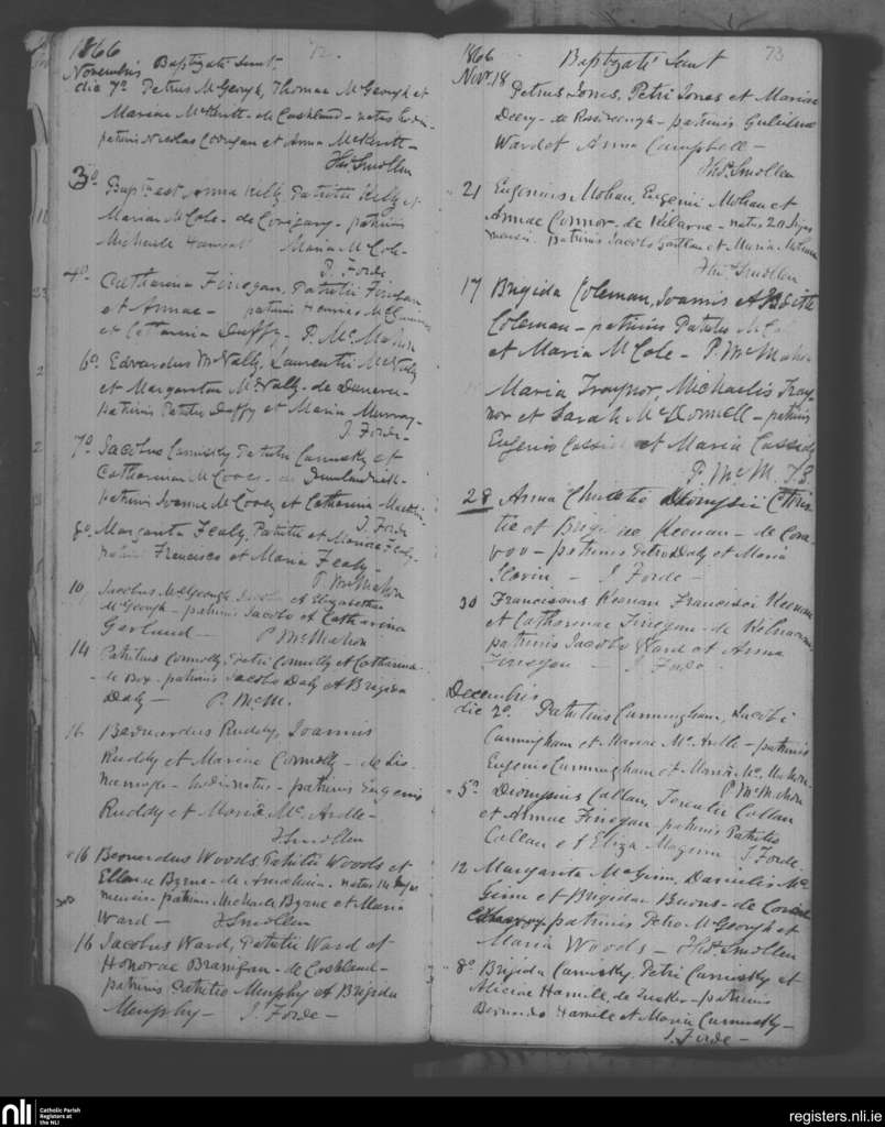 Donaghmoyne; County of Monaghan; Diocese of Clogher. Baptisms, Nov. 1866 to Dec. 1866