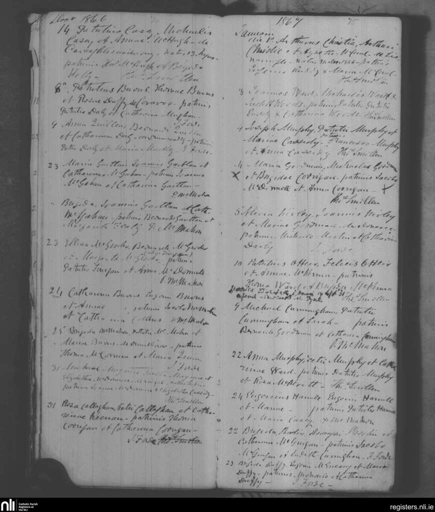 Donaghmoyne; County of Monaghan; Diocese of Clogher. Baptisms, Dec. 1866 to Jan. 1867