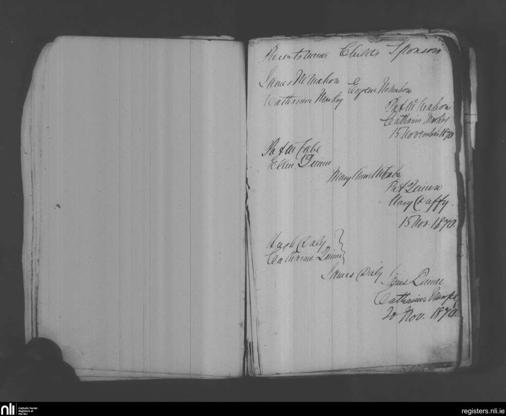 Donaghmoyne; County of Monaghan; Diocese of Clogher. Baptisms, Nov. 1870