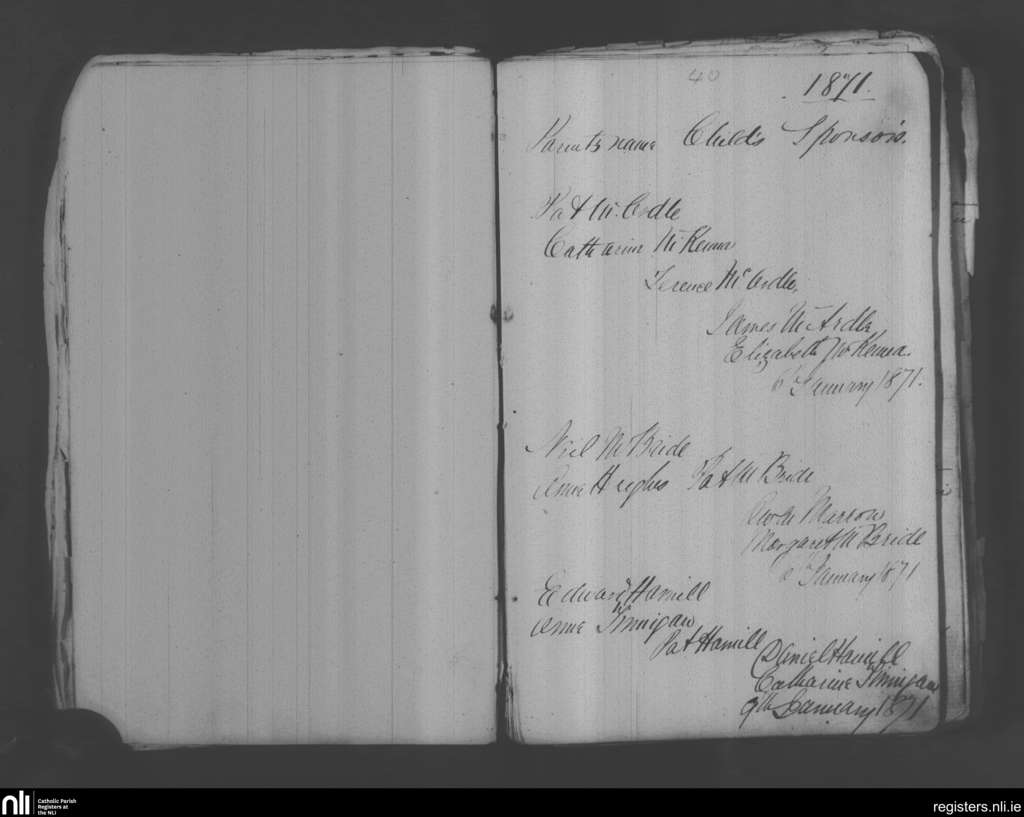 Donaghmoyne; County of Monaghan; Diocese of Clogher. Baptisms, Jan. 1871