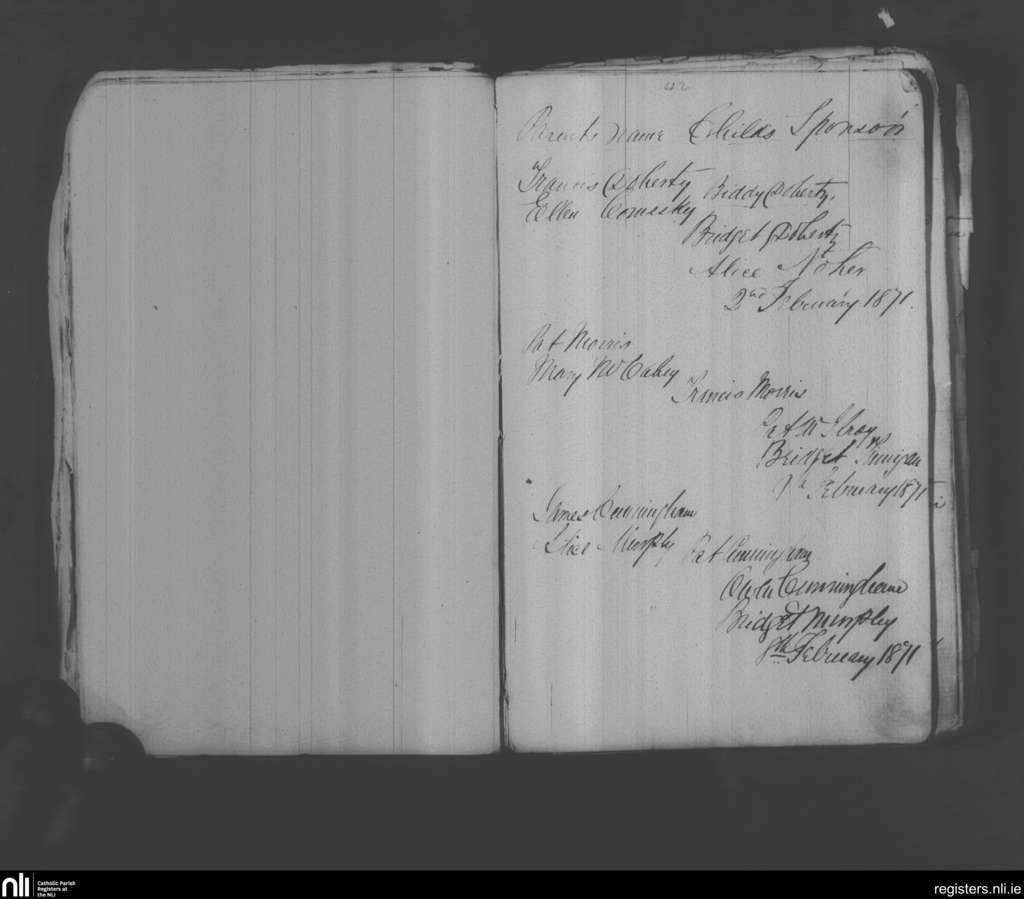 Donaghmoyne; County of Monaghan; Diocese of Clogher. Baptisms, Feb. 1871