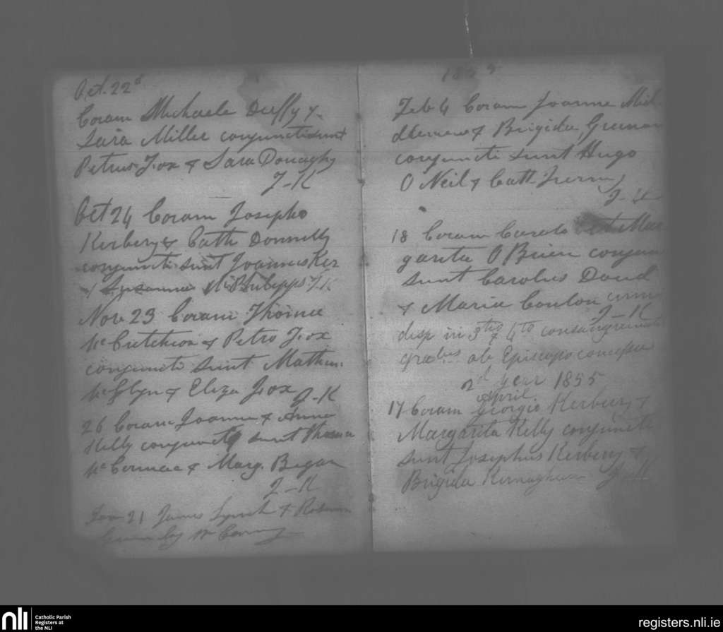 Ematris; County of Monaghan; Diocese of Clogher. Marriages, Oct. 1854 to Apr. 1855