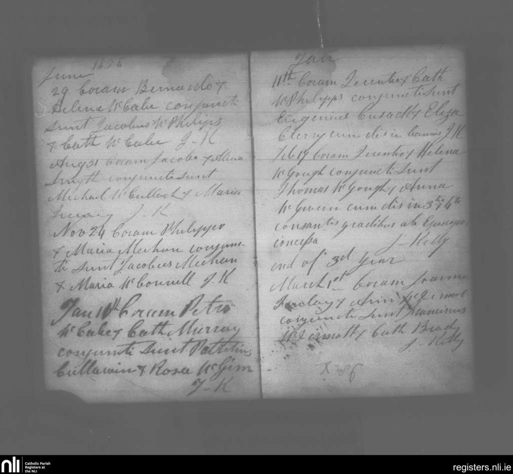 Ematris; Contae Monaghan; Deoise Clogher. Marriages, Meith. 1856 go dtí an Már. 1857