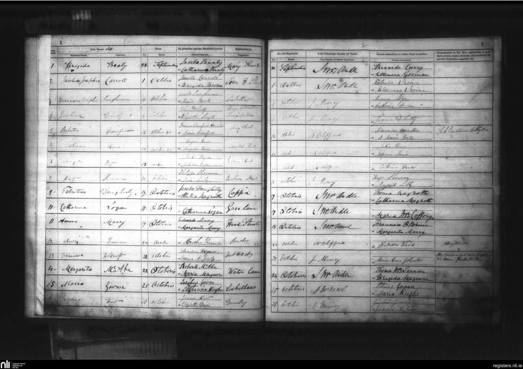 Enniskillen; County of Fermanagh; Diocese of Clogher. Baptisms, Sep. 1868 to Oct. 1868