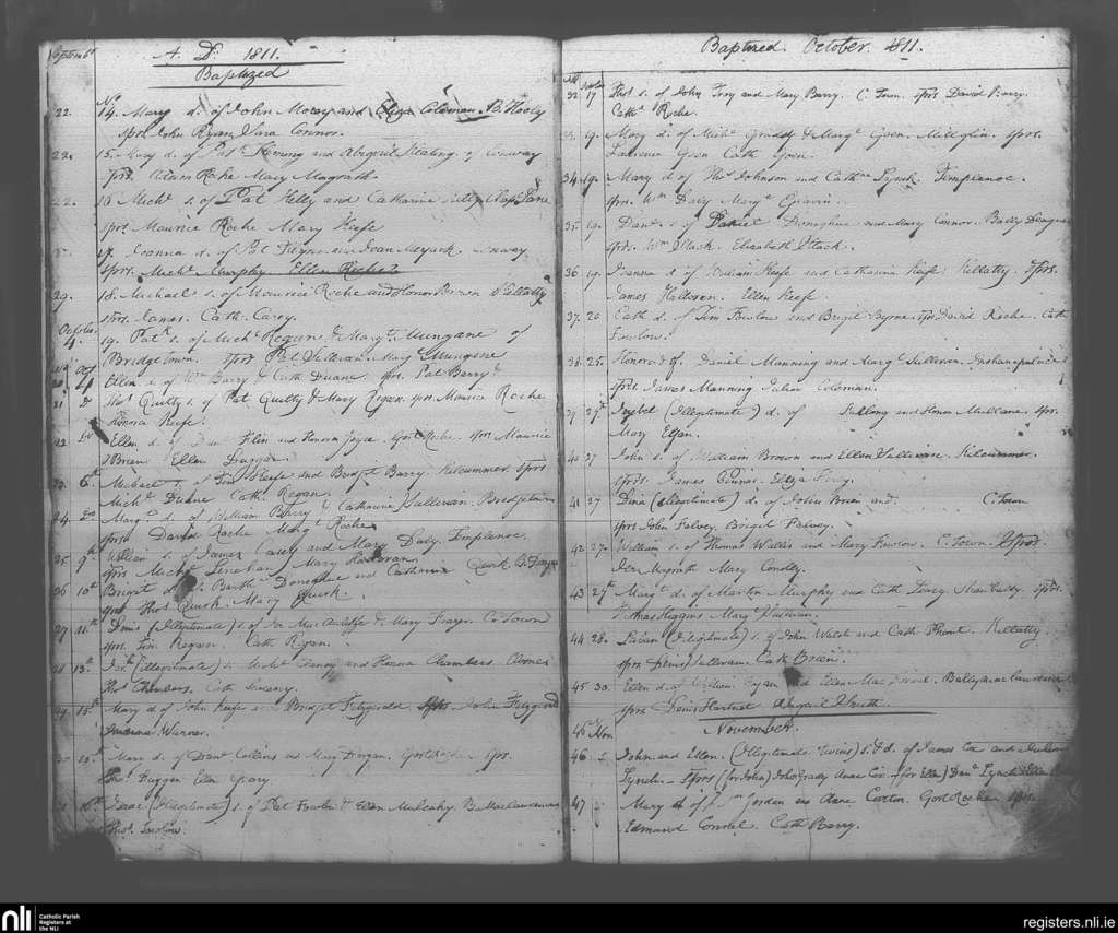 Castletownroche; County of Cork; Diocese of Cloyne. Baptisms, Sep. 1811 to Nov. 1811
