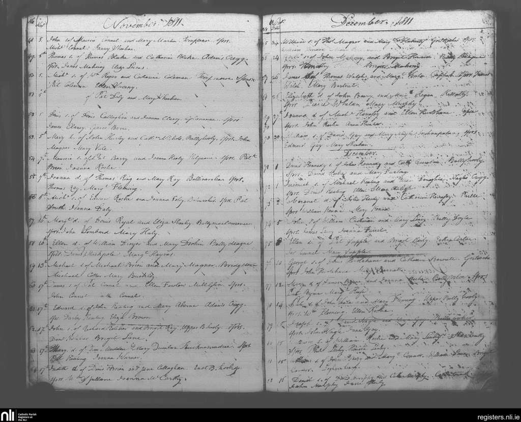 Castletownroche; County of Cork; Diocese of Cloyne. Baptisms, Nov. 1811 to Dec. 1811