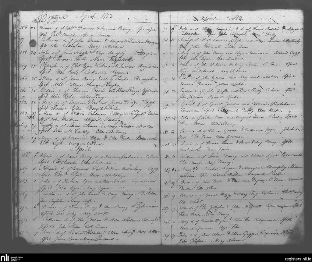 Castletownroche; County of Cork; Diocese of Cloyne. Baptisms, Mar. 1812 to Apr. 1812