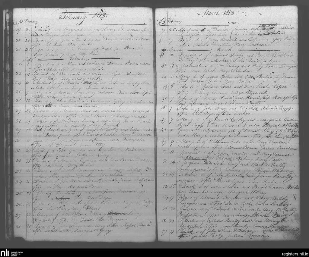 Castletownroche; County of Cork; Diocese of Cloyne. Baptisms, Jan. 1813 to Mar. 1813