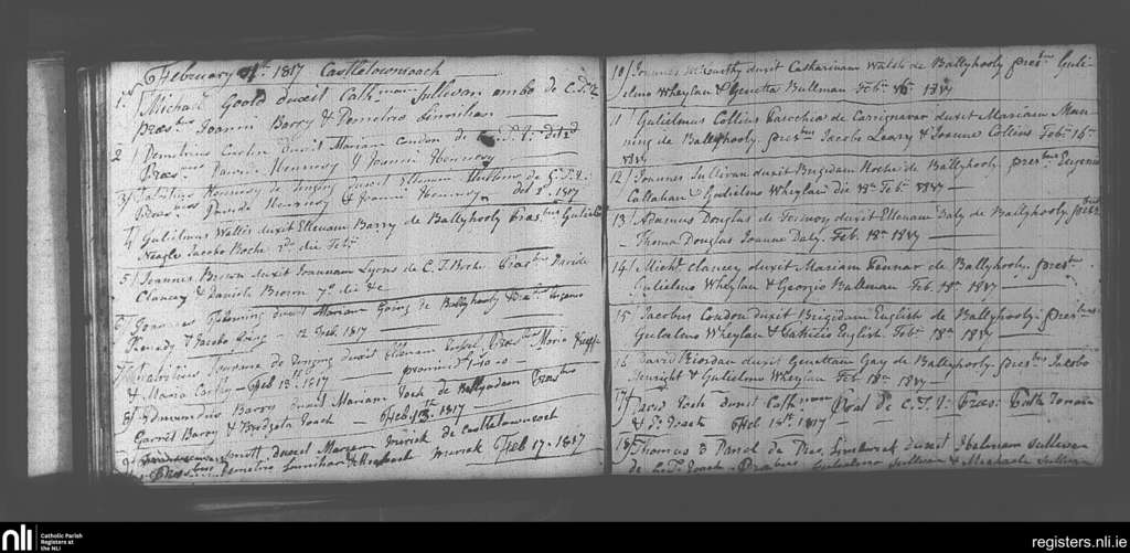 Castletownroche; County of Cork; Diocese of Cloyne. Marriages, Feb. 1817