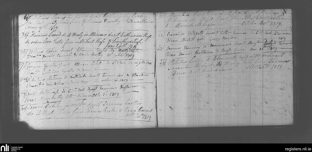 Castletownroche; County of Cork; Diocese of Cloyne. Marriages, May 1819 to Nov. 1819