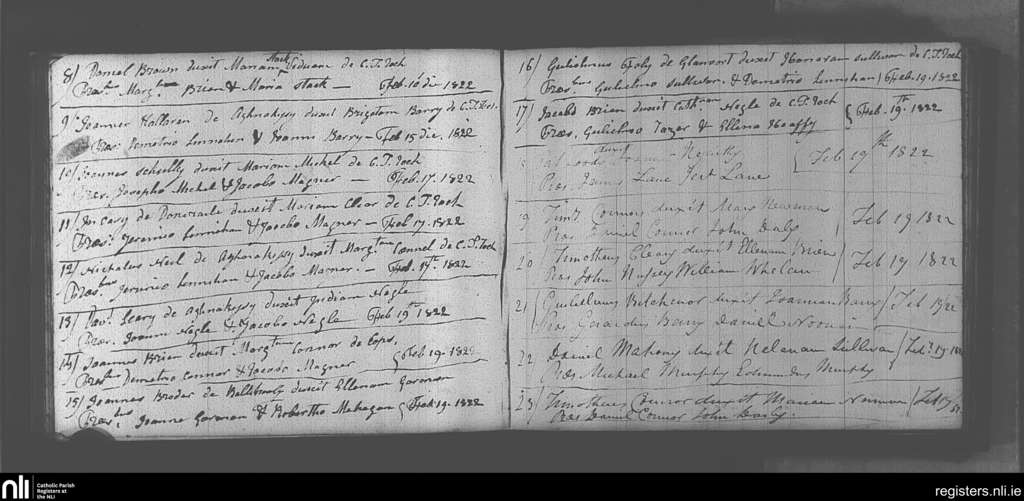 Castletownroche; County of Cork; Diocese of Cloyne. Marriages, Feb. 1822