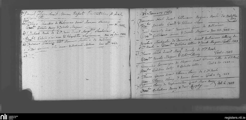 Castletownroche; County of Cork; Diocese of Cloyne. Marriages, Nov. 1822 to Feb. 1823