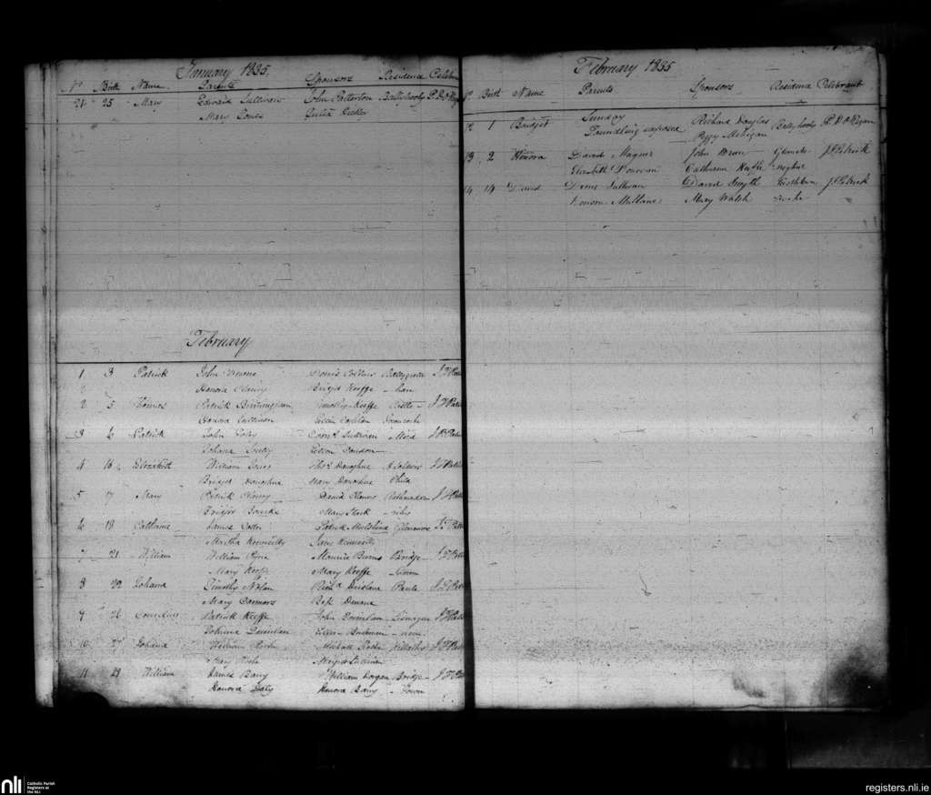 Castletownroche; County of Cork; Diocese of Cloyne. Baptisms, Jan. 1835 to Feb. 1835