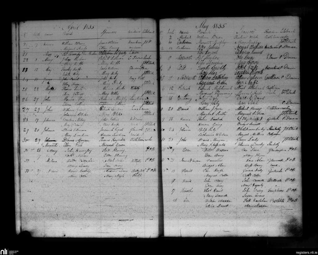 Castletownroche; County of Cork; Diocese of Cloyne. Baptisms, Apr. 1835 to May 1835