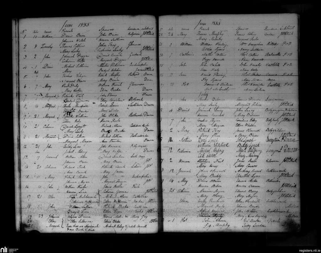 Castletownroche; County of Cork; Diocese of Cloyne. Baptisms, June 1835 to July 1835