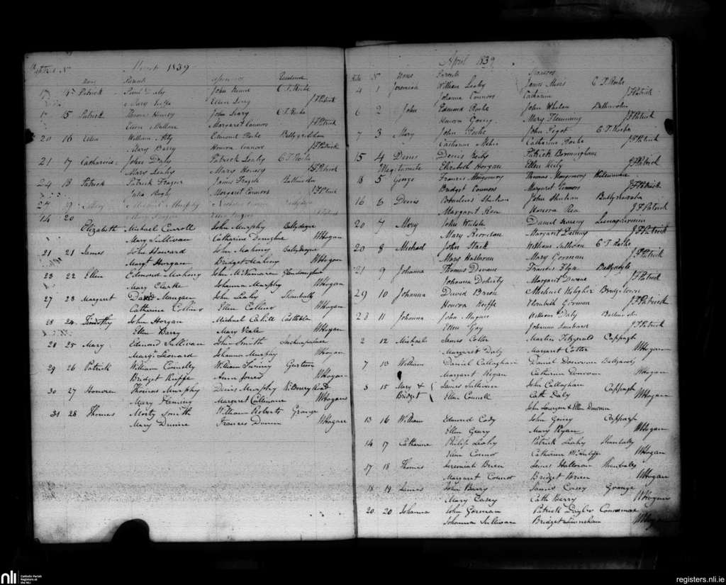 Castletownroche; County of Cork; Diocese of Cloyne. Baptisms, Mar. 1839 to Apr. 1839