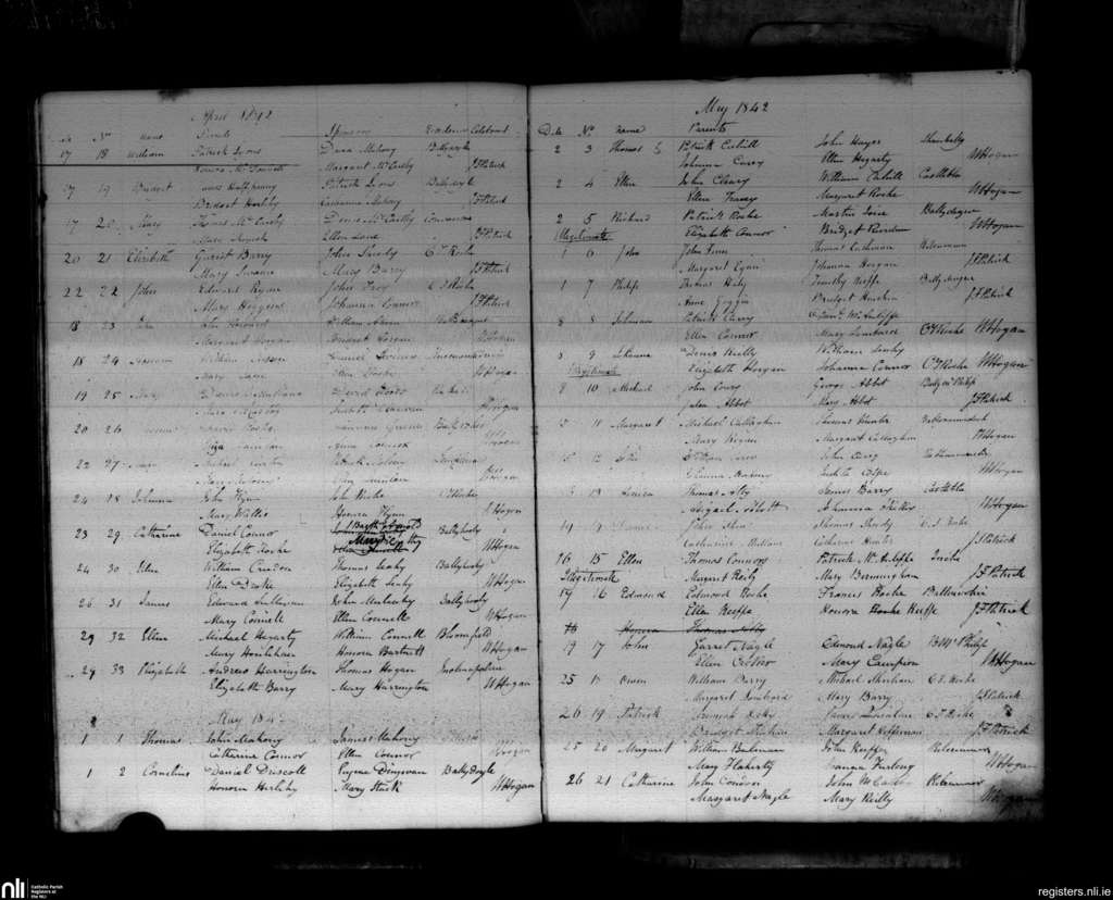 Castletownroche; County of Cork; Diocese of Cloyne. Baptisms, Apr. 1842 to May 1842