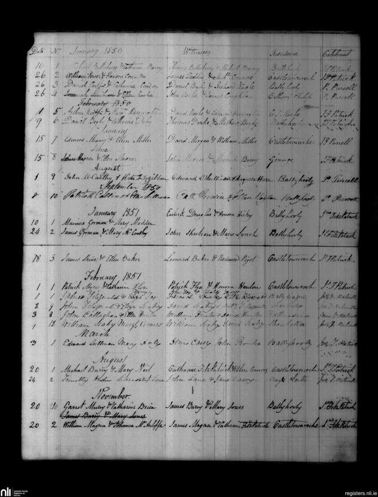 Castletownroche; County of Cork; Diocese of Cloyne. Marriages, Jan. 1850 to Nov. 1851