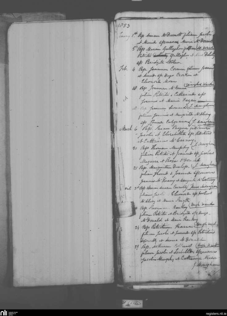 Galloon; County of Fermanagh; Diocese of Clogher. Baptisms, Jan. 1853 to Apr. 1853