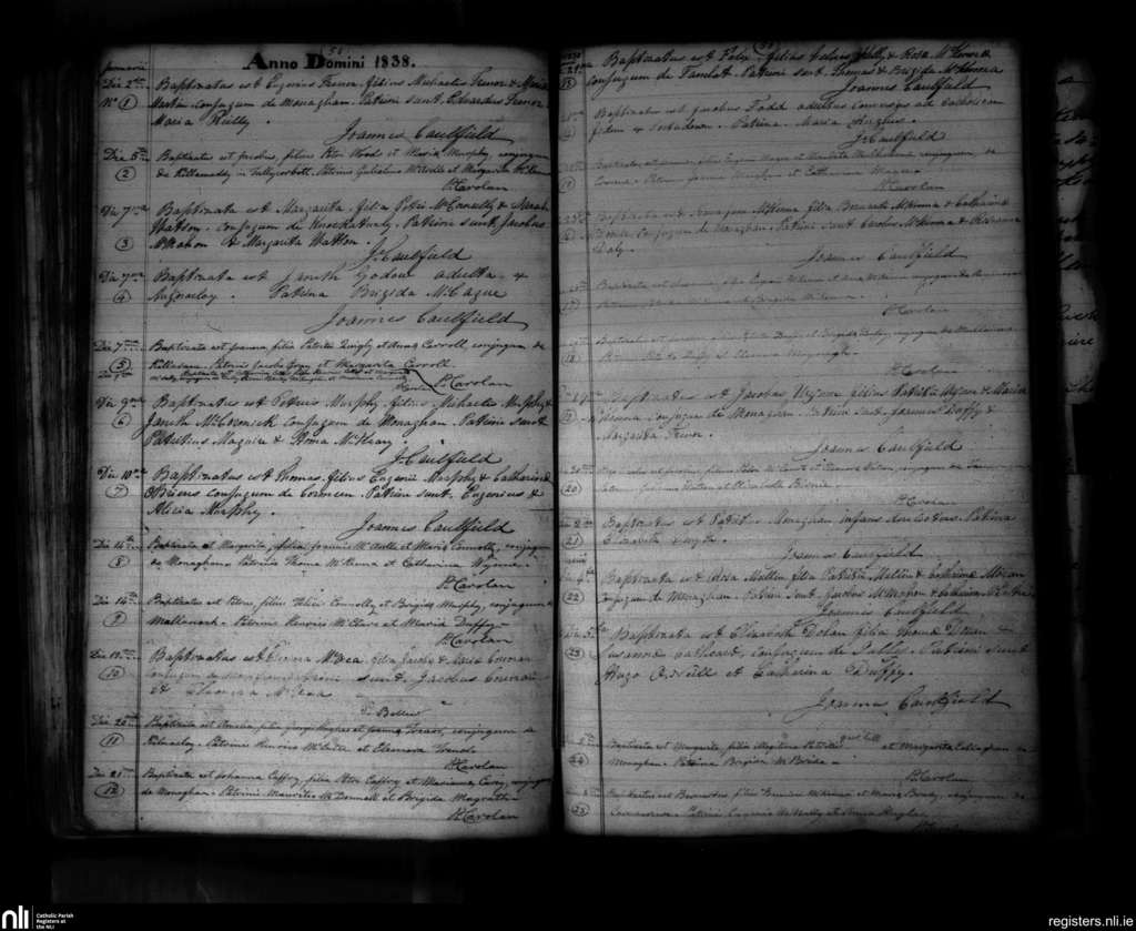 Monaghan; County of Monaghan; Diocese of Clogher. Baptisms, Jan. 1838 to Feb. 1838
