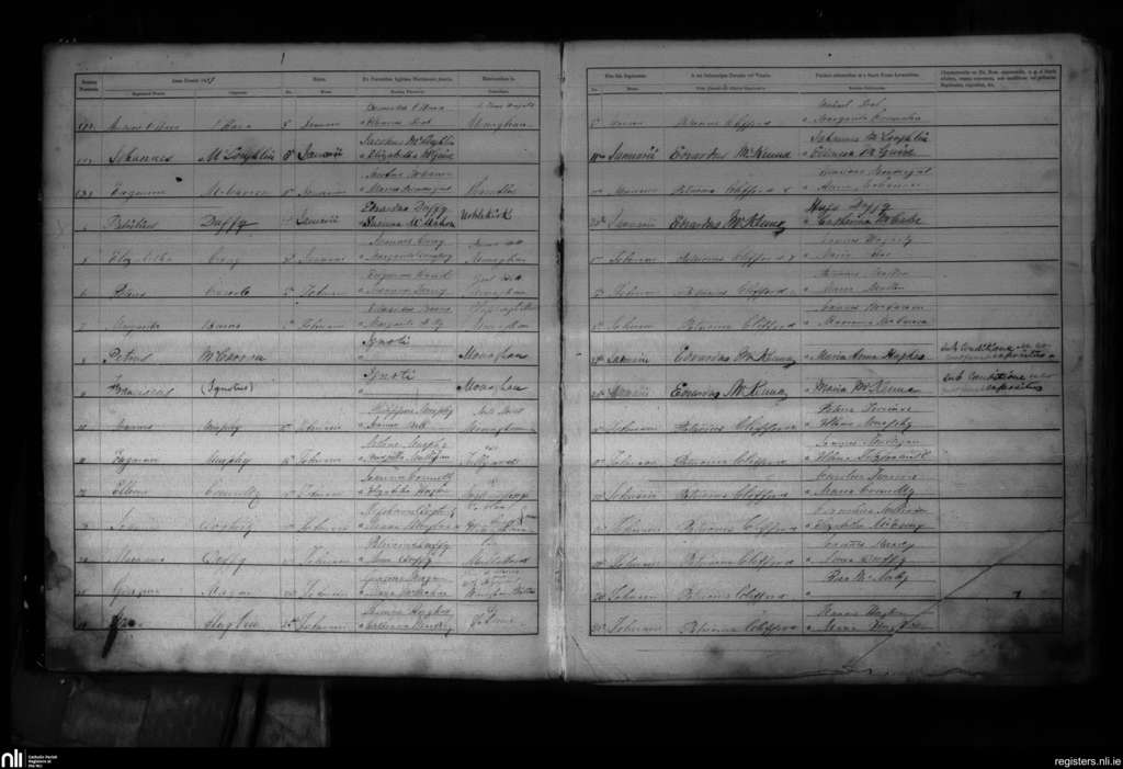 Monaghan; County of Monaghan; Diocese of Clogher. Baptisms, Jan. 1857 to Feb. 1857