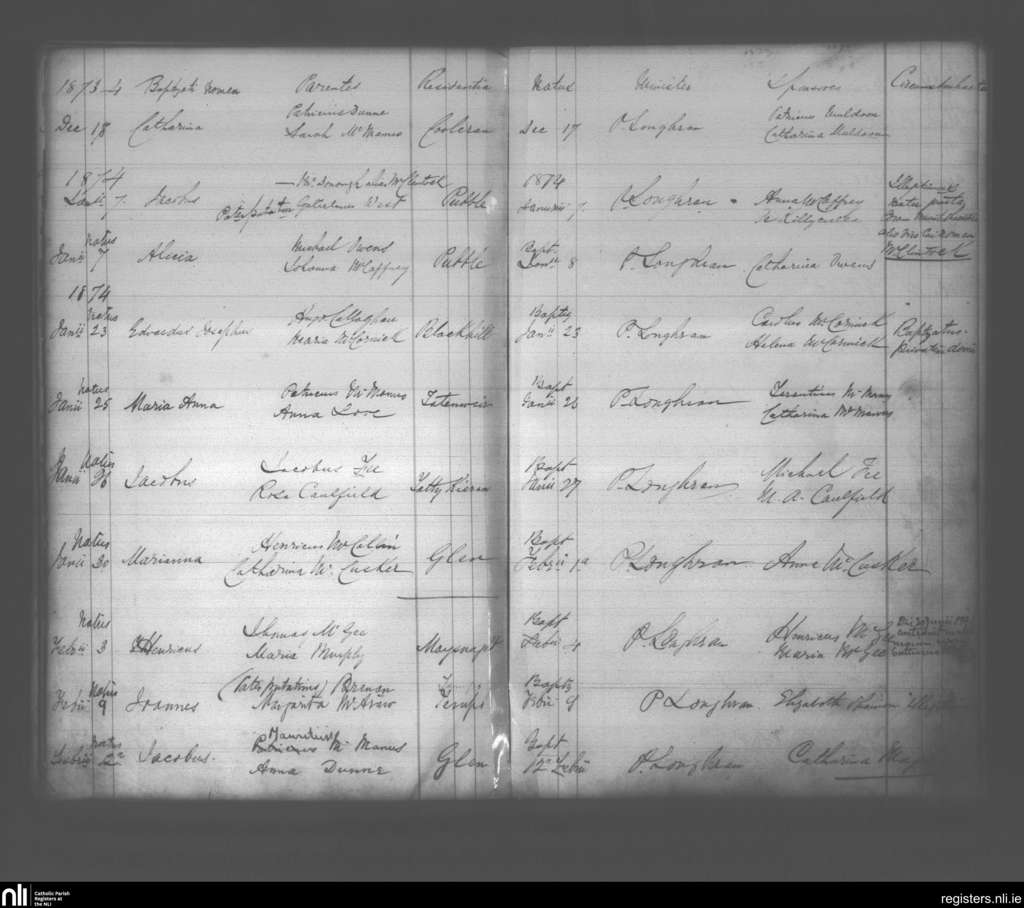 Tempo; County of Fermanagh; Diocese of Clogher. Baptisms, Dec. 1873 to Feb. 1874